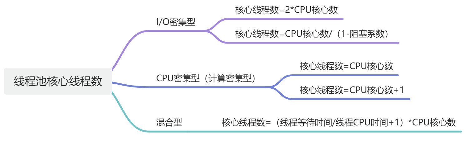 - 常规设置:核心线程数 = CPU核数 × 2